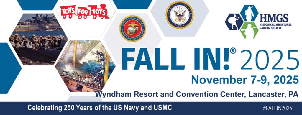 Greetings to all historical miniatures gamers, event hosts, historians, vendors, artists, and others who are members of our great gaming community.  I am pleased to announce that planning for Fall In! 2025 is underway and to be able to provide some initial information.