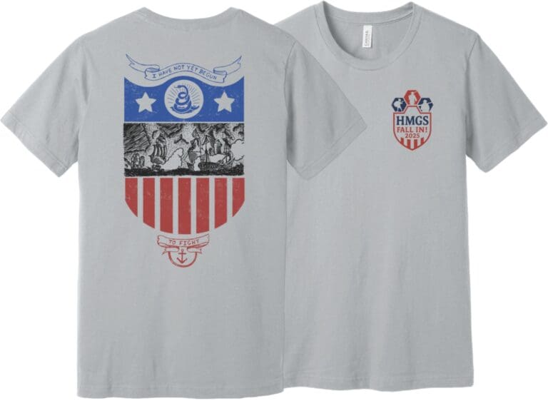 The Fall In! 2025 t-shirt is available (in blue, tan, or grey) for purchase here through TR Historical. Purchased shirts can be picked up at the TR Historical booth at the show, or delivered to you (for a shipping fee).